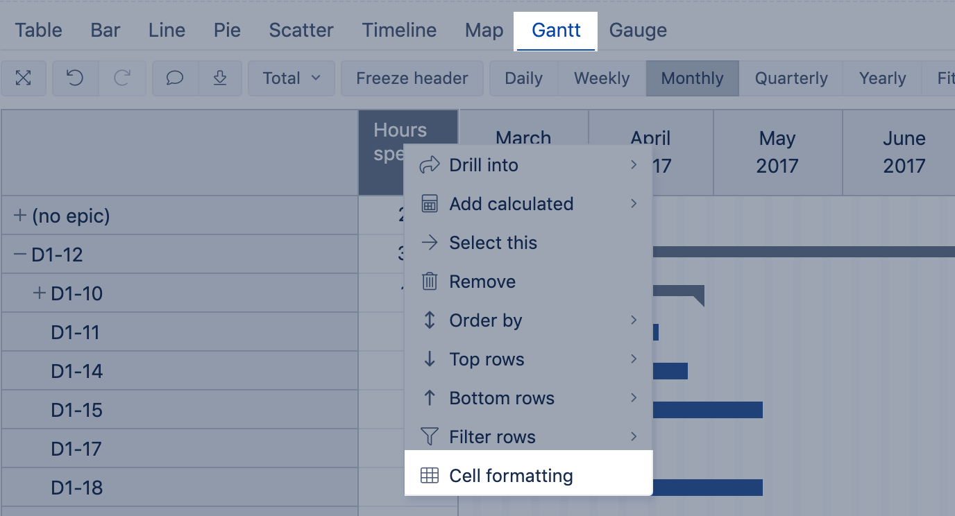 Cell formatting for Gantt charts