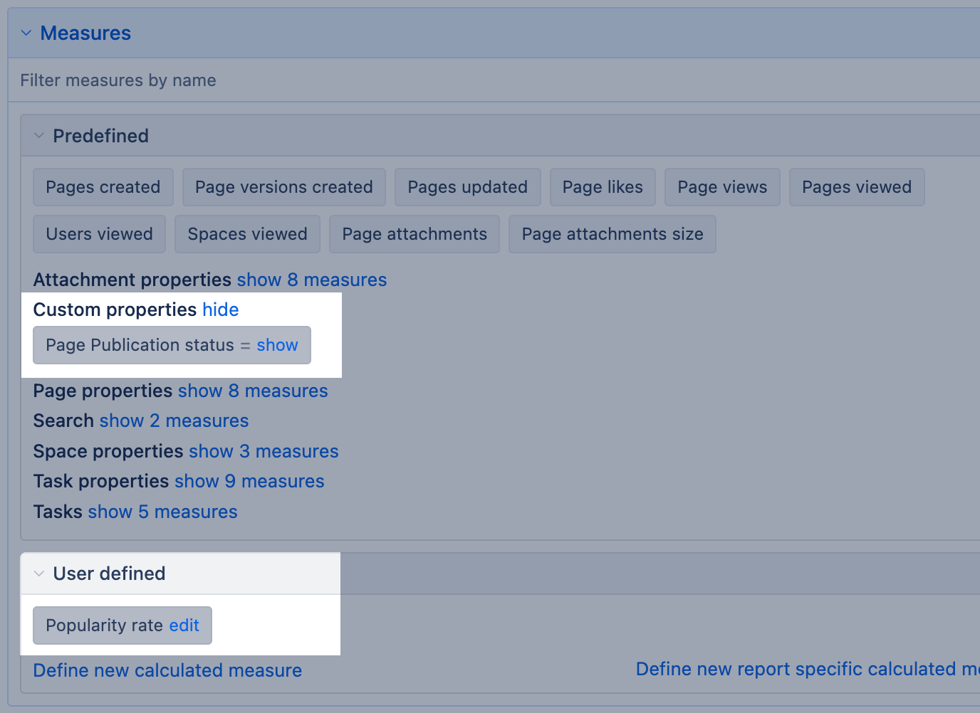 - Imported properties will be visible in Measures dimension under the Predefined → Custom properties section