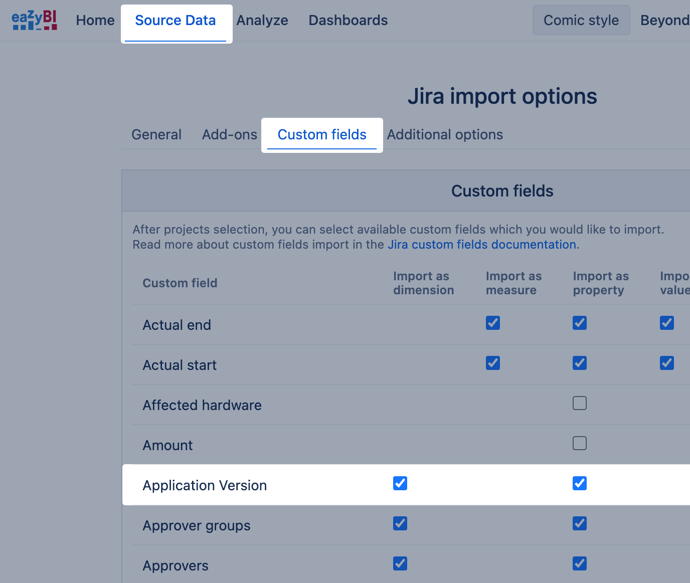 This page describes how you can import Elements Connect custom fields in eazyBI.