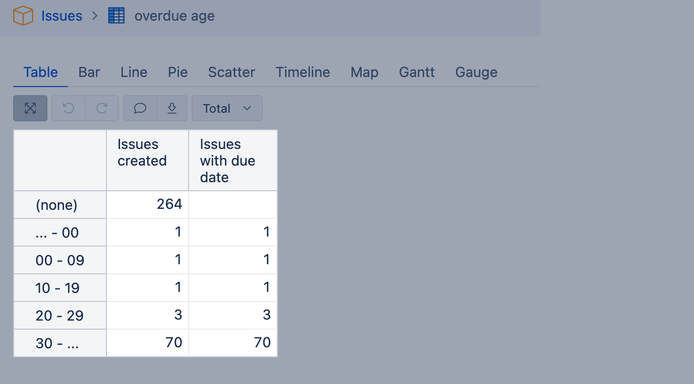In this new dimension, the (none) member will count issues without a due date, and member "... - 00" represents issues with a due date in the future.