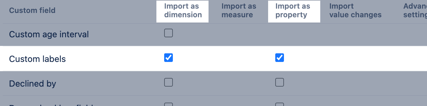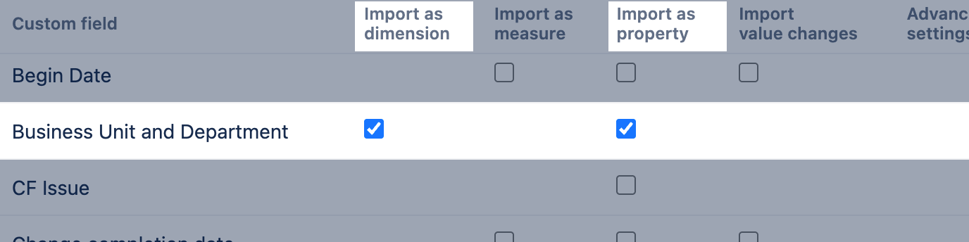 Additionally, you can apply custom field advanced settings to create an additional CSV dimension and analyze all applied combinations for imported issues as comma-separated strings.