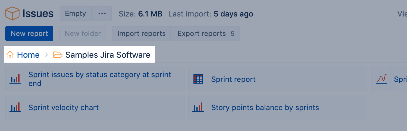 If you selected the Import sample reports option, then additional sample reports are created in the Samples Jira Software folder. Please try these reports to see which measures would be useful for your specific needs. If you would like to customize some reports then save them and change the name (as the default sample reports are overwritten during each Jira import). You may read step-by-step descriptions of how those reports are built: Samples Jira Software