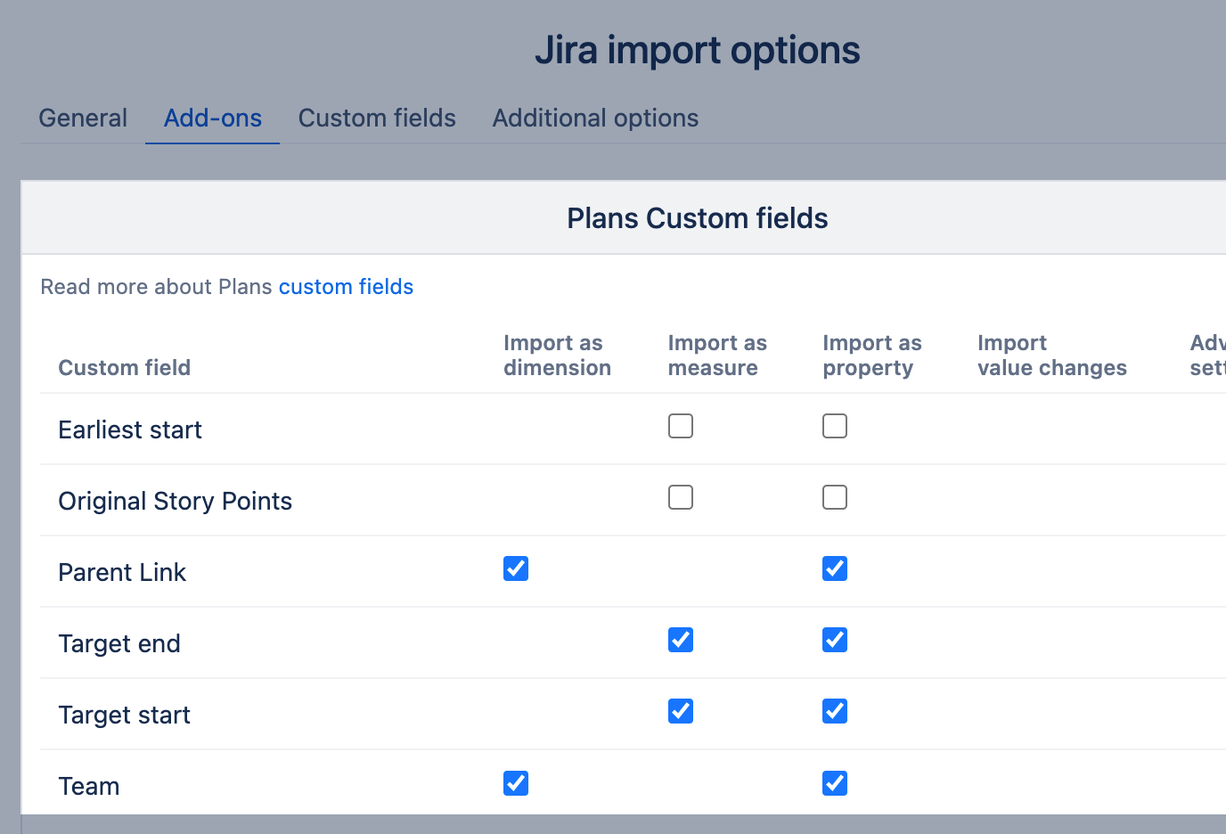 Plans for Jira custom fields import