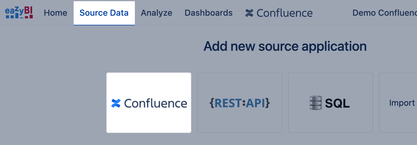Go to tab Source Data and select data import from Confluence. Select from which Confluence spaces you would like to analyze page events, tasks, attachments, and search queries.