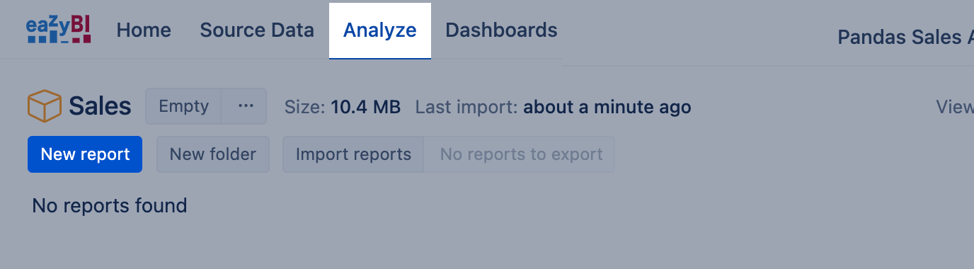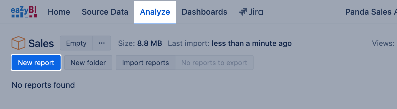 After mapping and importing data, go to Analyze tab and explore data by creating New report. It would be essential to understand the report building blocks, measures, and dimensions before making eazyBI reports.