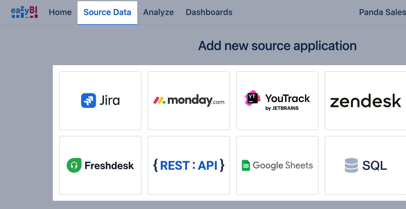 First of all, Create new account to create a data cube and start using eazyBI. You may have several accounts for different data sources and reporting purposes.