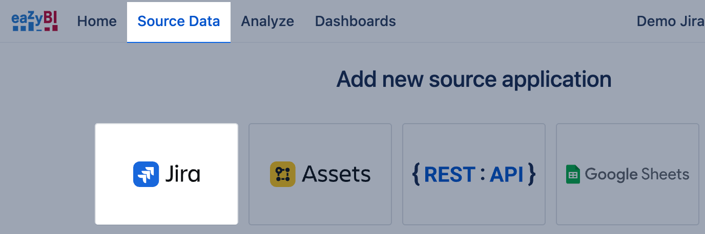 Go to tab Source Data and select data import from Jira. Jira issue custom fields and apps are essential to Jira and give Jira users a lot of freedom. You can import data from those custom fields or apps in eazyBI by selecting them for data import in tabs Custom fields and Add-ons.