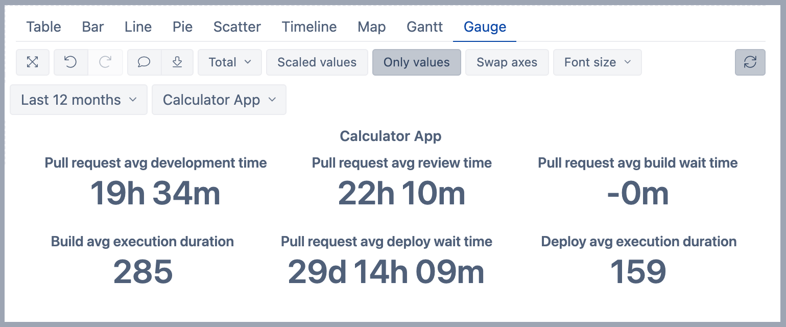 - Deployment avg execution duration - Bamboo deployment execution time in seconds.