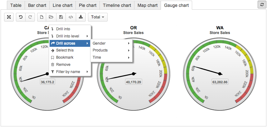 eazyBI already includes a gauge chart based on solid gauge chart from the Highcharts library. This is just an example of how to add a different gauge chart based on the angular gauge chart.
